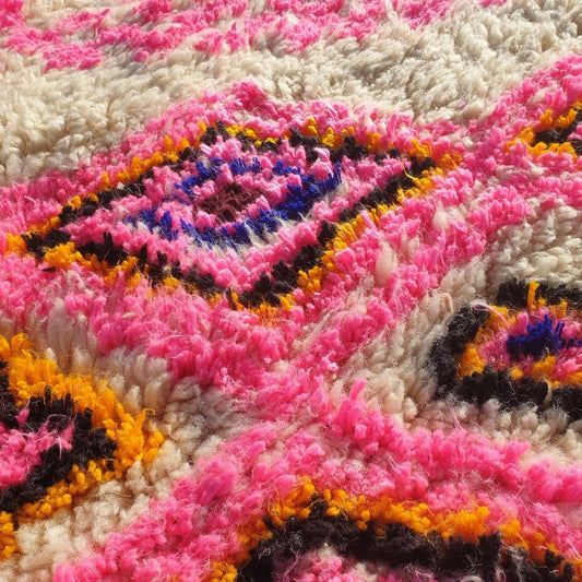 Lazala - Weiß und Pink 5x8 Beni Mrirt Luxuriöser marokkanischer Teppich Ultra weich und dick | 5'05x8'46 ft | 154x258 cm