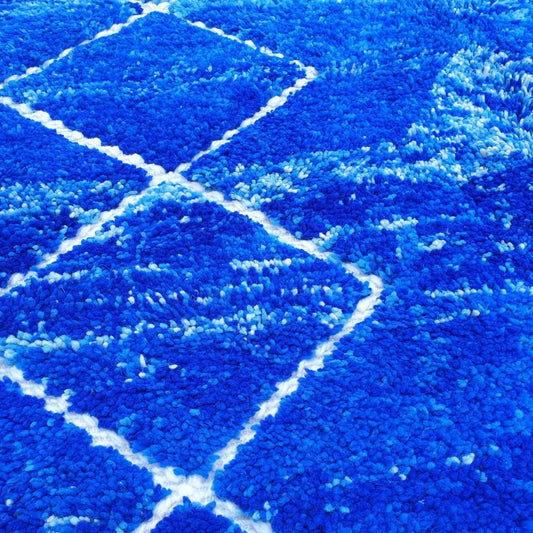 Majorel | Kobaltblau 5x8 Marokkaner Teppich weicher authentischer Beni Ourain | 5'41x8'30 ft | 165x253 cm
