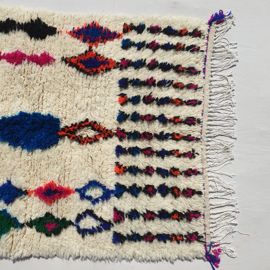 Ntema - Marokkanischer Teppich 3x5 Weiß Azilal | Authentischer handgefertigter marokkanischer Berber-Schlafzimmerteppich | 3'11x5'05 Fuß | 95x154 cm