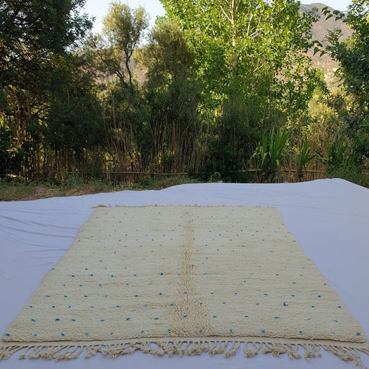 Laghala - BENI OUARAIN marokkanischer weißer Teppich für Schlafzimmer | Marokkanischer Hochflor-Teppich aus authentischer Berberwolle | 5'4x3'6 Fuß | 165 x 110 cm