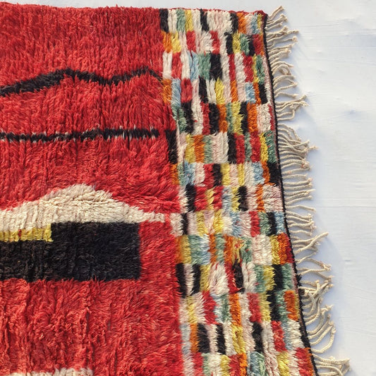 Tialna - Roter marokkanischer Teppich 5x8 Boujad Berber | Authentischer Berber-Teppich für Wohnzimmer und Schlafzimmer | 4'92x8'13 Fuß | 150x248 cm