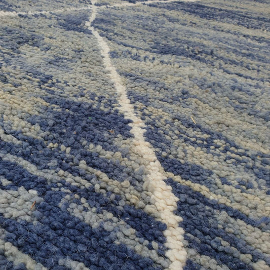 Mawja | Blau marokkanischer Teppich 7x9 Soft Beni Ourain | Handgefertigter Berber -Wolle Teppich | 7'12x9'88 ft | 217x301 cm