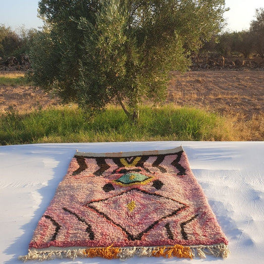 Najmaya - BENI OUARAIN marokkanischer rosa Teppich für Schlafzimmer | Marokkanischer Hochflor-Teppich aus authentischer Berberwolle | 9x5'4 Fuß | 274 x 163 cm