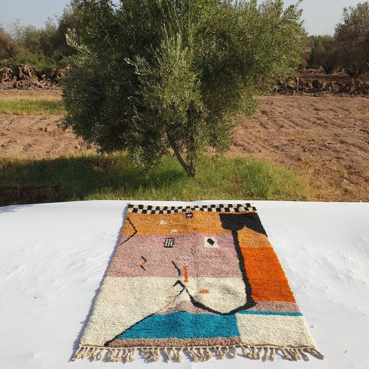 Kanaria - Marokkanischer Teppich Boujaad | Bunter authentischer handgefertigter Berber-Schlafzimmerteppich | 6'70x5'10 Fuß | 2,03 x 1,55 m