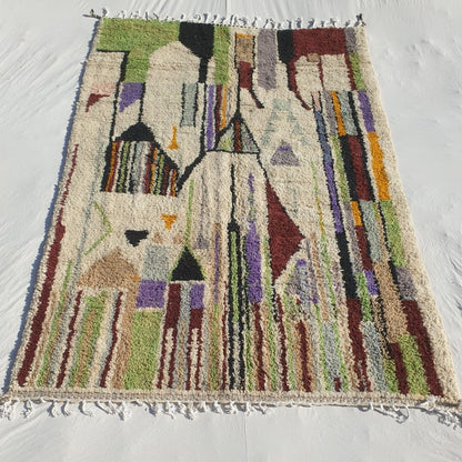 Der Klassiker Beni Ouaran , der beste Teppich für jedes Interieur und jedes Design. Ait Ouaraïn ist ein kleiner, aber berühmter Stamm im Osten der Stadt Taza im Mittlerer Atlas , sie verwenden nur weiche und dicke Naturwolle, um das Beste zu machen handgemachte Funken für Ihren Raum. Die Farben und Stile sind von den schneebedeckten Rocky Mountains des Mittleren Atlas inspiriert.