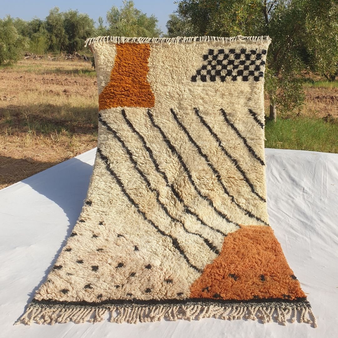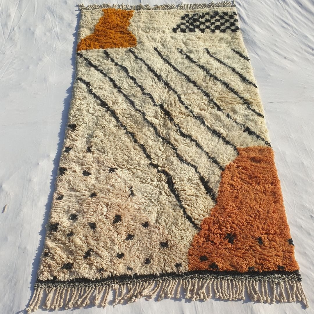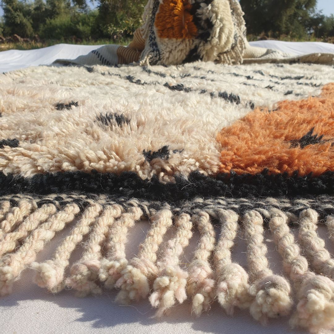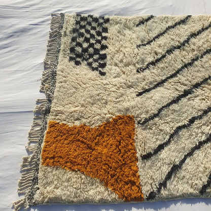 Der Klassiker Beni Ouarain, der beste Teppich für alle Innenräume und alle Designs. Ait Ouaraïn ist ein kleiner, aber berühmter Stamm im Osten der Stadt Taza im Mittleren Atlas, sie Verwenden Sie nur weiche und dicke Naturwolle, um den besten handgemachten Funken für Ihren Raum zu schaffen. Die Farben und Stile sind von den schneebedeckten und felsigen Bergen des mittleren Atlas inspiriert.