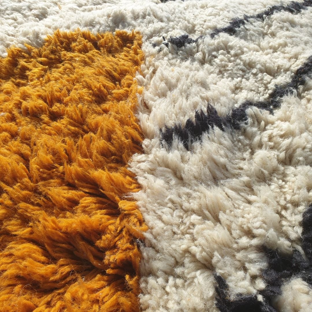 Lamane | Luxurious Golden Yellow 6x9 Moroccan Rug Plush Beni Mrirt Ultra Soft | Authentic Berber wool Beni Rug | 6'63x9'71 Ft | 202x296 cm