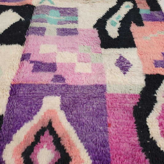 Khabya- Purple Moroccan Rug 5x8 Boujad | Authentic Berber Living room & Bedroom Rug | 4'82x8'69 Ft | 147x265 cm