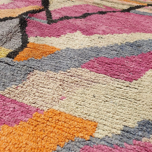 Saifya- Pink & Orange Moroccan Rug 5x8 Boujaad | Authentic Berber Living room & Bedroom Rug | 5'38x8'43 Ft | 154x257 cm