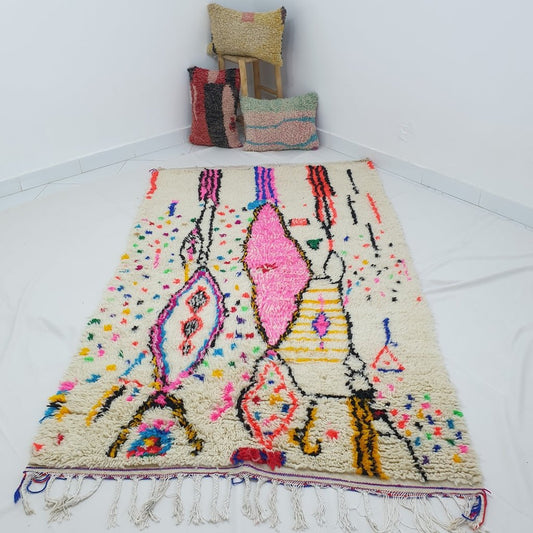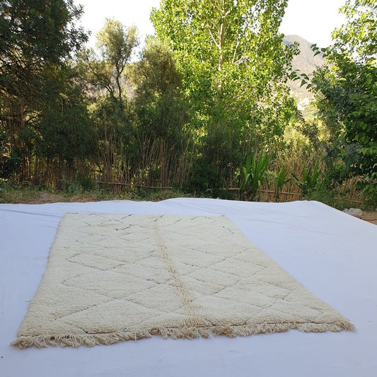 BENI OUARAIN RUG White Bedroom Carpet | Moroccan High Pile Area Rug Berber Authentic Wool | 4'9x3'3 Ft | 150x100 cm