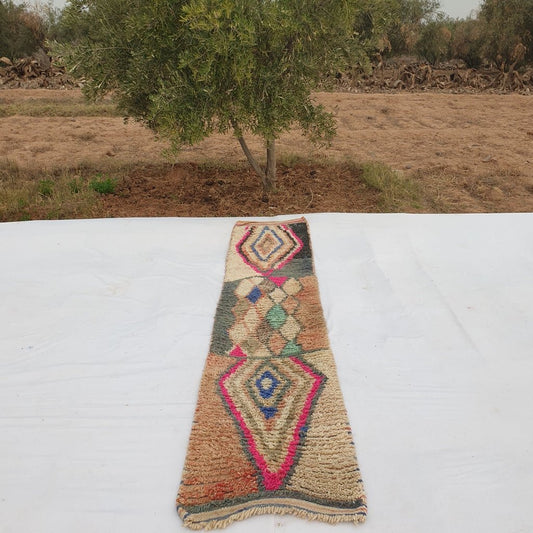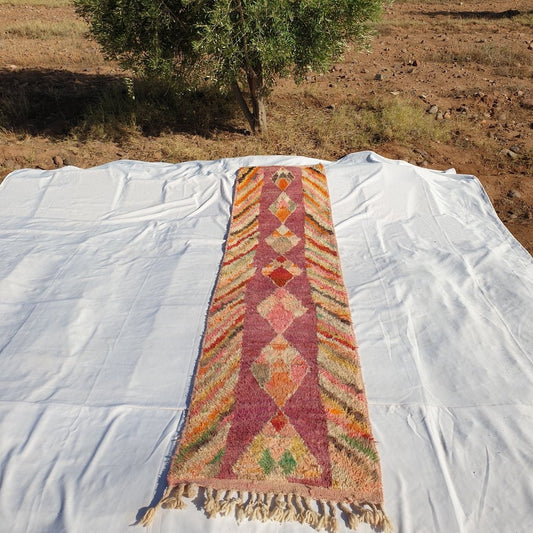 Moroccan Runner Rug | Authentic Boujaad Runner | Colorful Wool Rug | Berber Runner | Hallway Runner | 9'6 x 2' Ft | 2,92x0,60 m