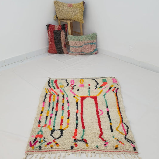 Moroccan White Rug Azilal | BEDYA | 4'4x3'3 Ft | 1,35x1 m | 100% wool handmade