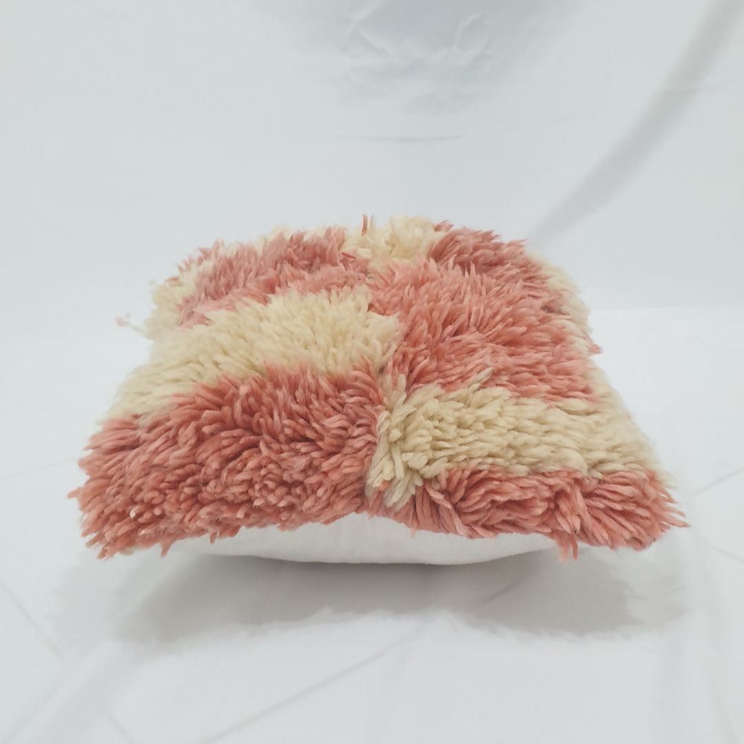 16x16 Shaggy Wool Cushion Cover - Beni Mrirt Pink Abstract | 40x40 cm