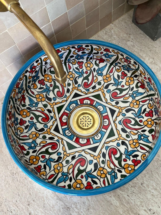 Agadir - Handmade Moroccan Ceramic Sink – Colorful Floral Bathroom Vessel Sink - (ESEN)