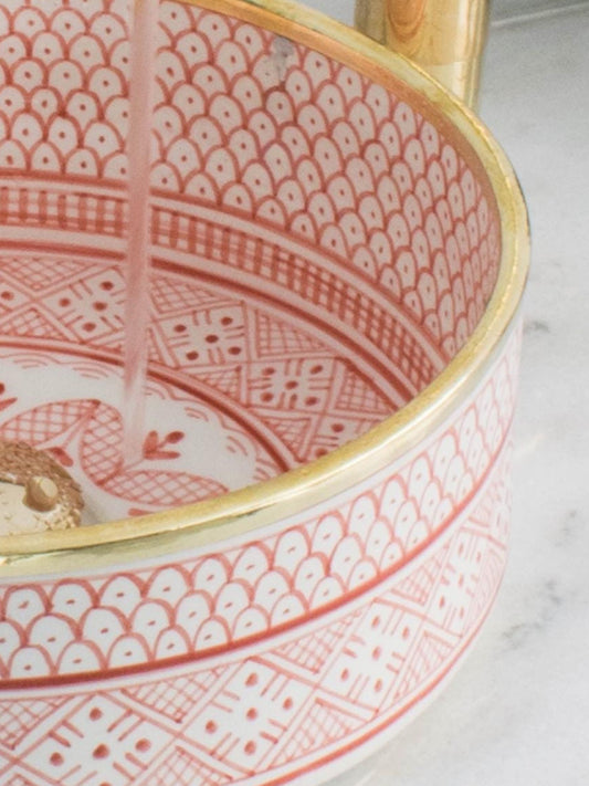 Tangier - Handmade Moroccan Ceramic Sink – Red and White Floral Bathroom Vessel Sink - (ESEN)