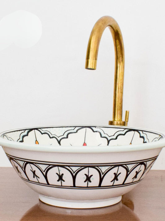 Istanbul - Handmade Moroccan Ceramic Sink – Black and White With Brass Rim Elegant Bathroom Vessel Sink - (ESEN)