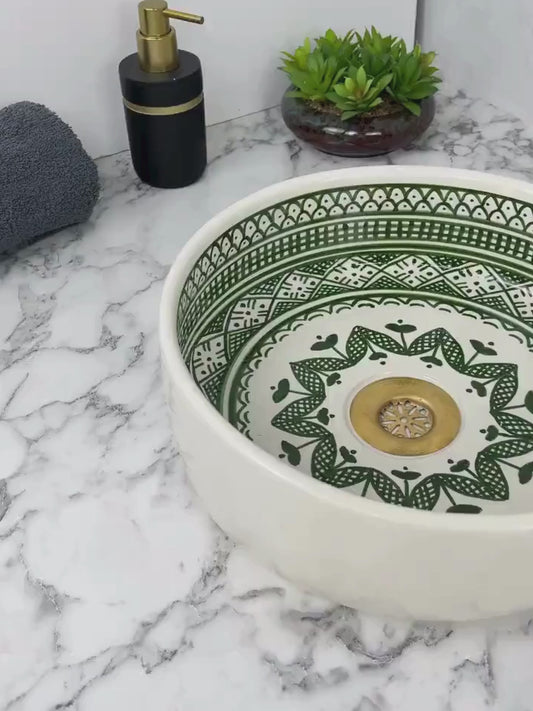 Oulmès - Round Green Bathroom Sink – Elegant, Handmade, Customizable, and Lead-Free - (ETMMT)