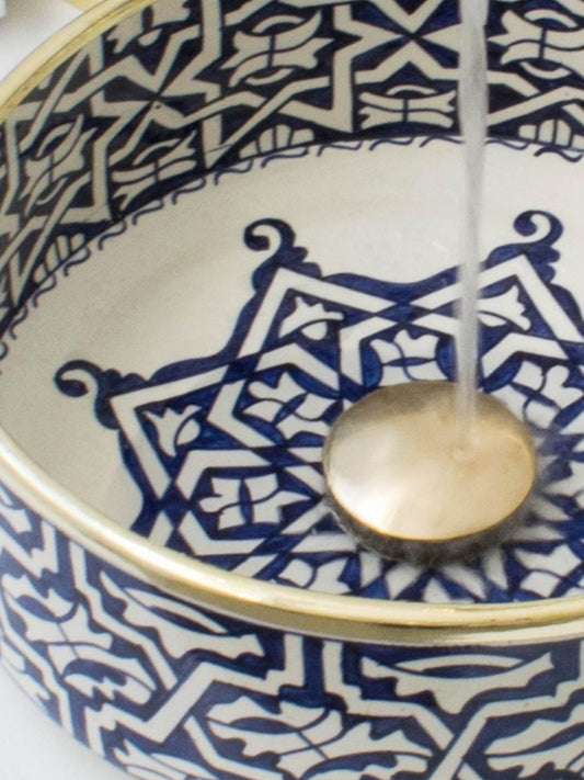 Istanbul - Handmade Moroccan Ceramic Sink – Black and White With Brass Rim Elegant Bathroom Vessel Sink - (ESEN)