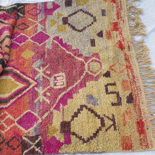 From yellow Moroccan rugs to rainbow lattice designs, our Azilal rugs brighten living rooms or hallways as vibrant Moroccan runner rugs. Each unique piece showcases the weaver’s creativity, perfect for boho-chic spaces. Explore colorful Azilal rugs now.