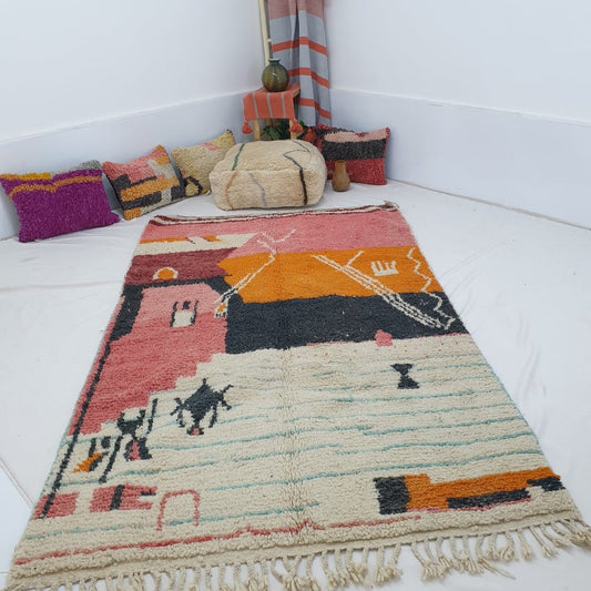 TZIRI | 7x5 Ft | 2,5x1,5 m | Moroccan Colorful Rug | 100% wool handmade