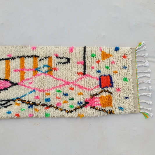 Chalia - Hallway Runner Moroccan Rug | Authentic White Azilal Wool Berber Runner | 2'26x10 Ft | 69x307 cm