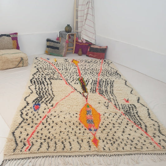 Tamazi - Moroccan Rug Beni Ouarain | Colorful Authentic Berber Handmade Bedroom Rug | 8'53x5'35 Ft | 2,60x1,63 m