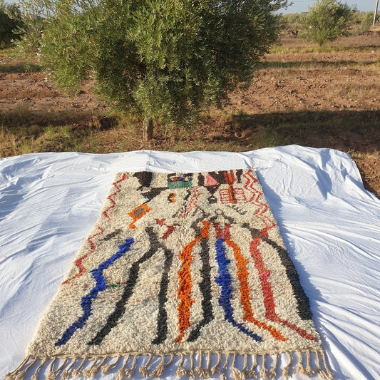 MOROCCAN BOUJAAD RUG | Moroccan Berber Rug | Colorful Rug Moroccan Carpet | Authentic Handmade Berber Bedroom Rugs | 8'4x5' Ft | 2,55x1,53 m