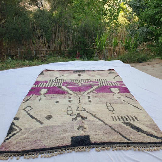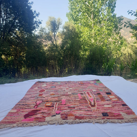Akar - Pink Boujad Moroccan Rug 5x8 | Authentic Handwoven Berber Wool Carpet | 8'2x5'2 Ft | 2,50x1,58 m