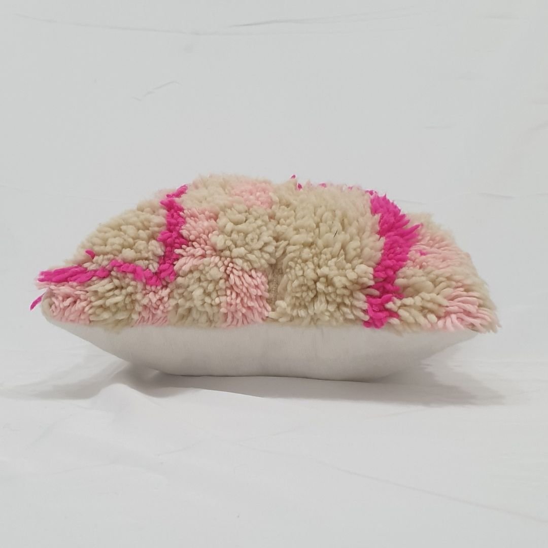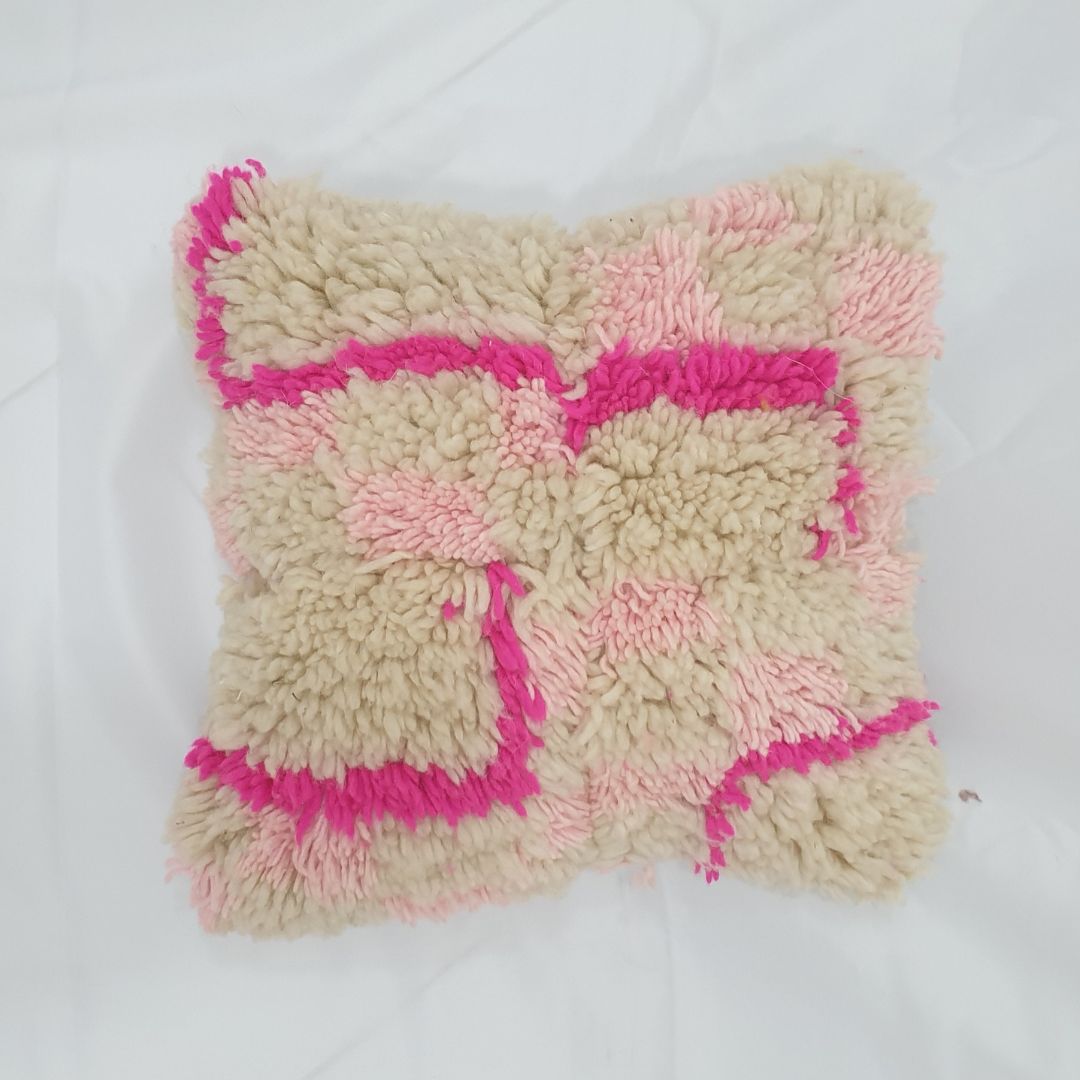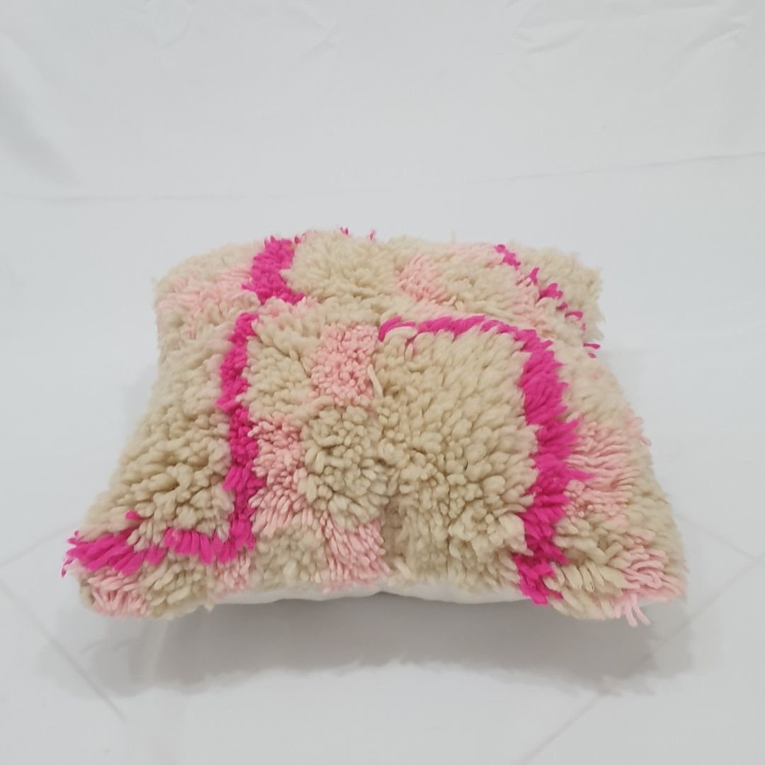 16x16 Shaggy Wool Cushion Cover - Beni Mrirt Pink Abstract | 40x40 cm