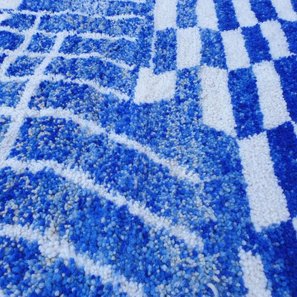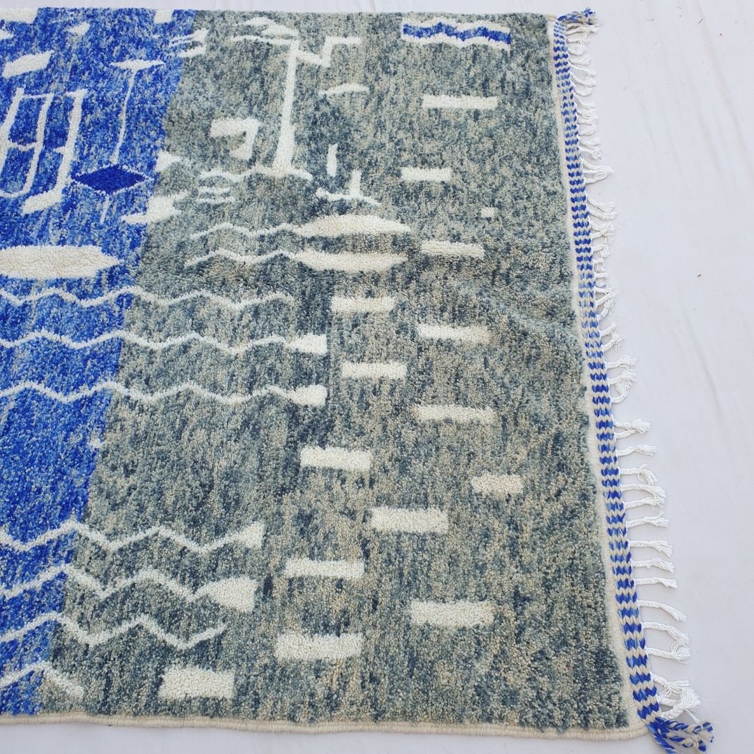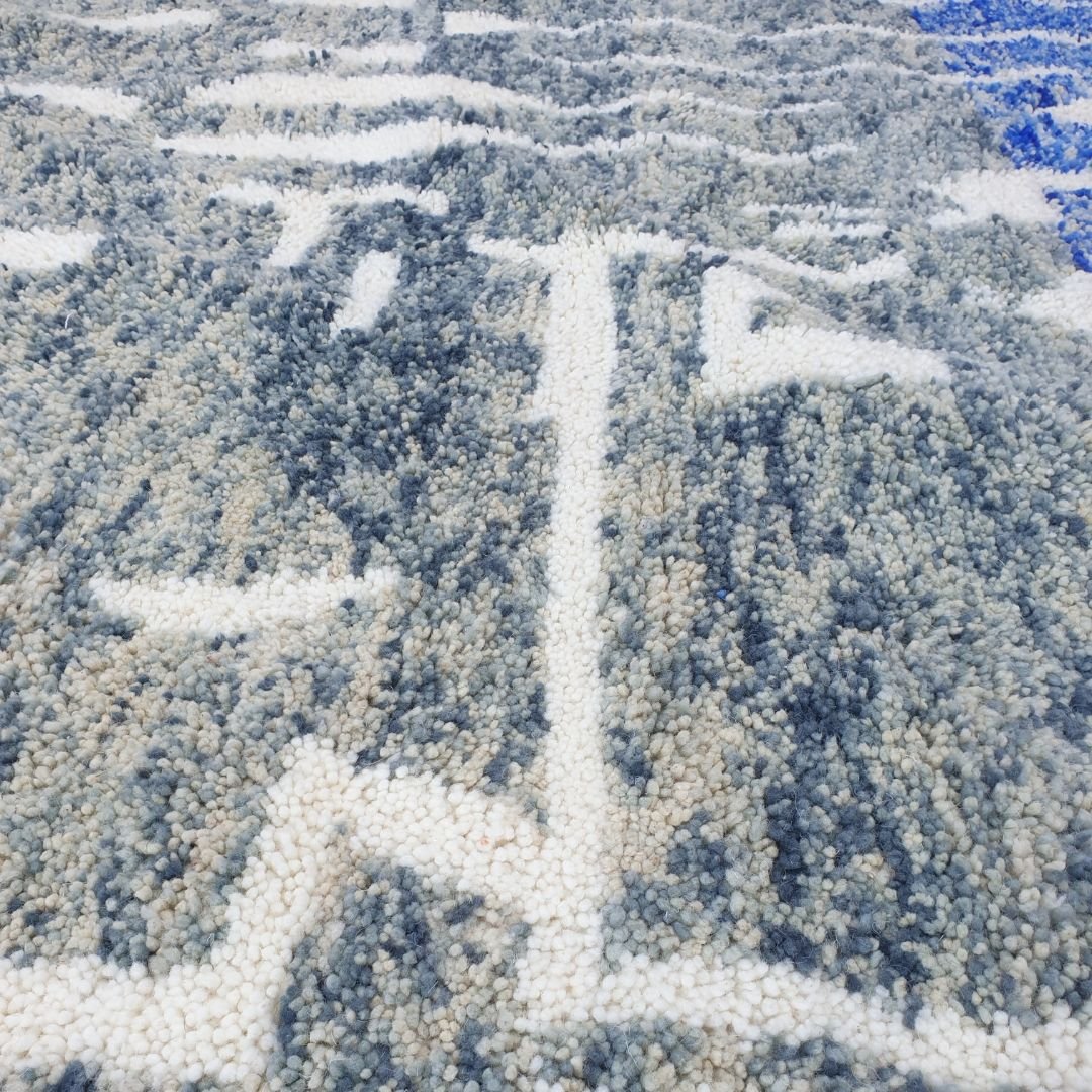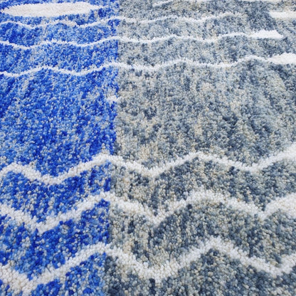 Fadma | Blue 7x10 Moroccan Rug Soft Beni Ourain | Berber Handmade Wool Carpet | 7'35x10' Ft | 224x302 cm