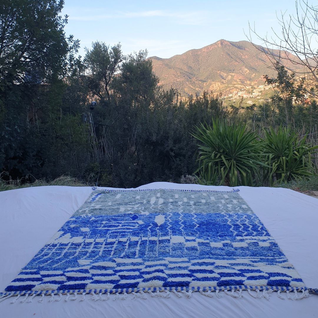 - How do I maintain my Beni Ouarain rug? Regular vacuuming and occasional professional cleaning are recommended. For more detailed care instructions, visit our cleaning instruction page here : Cleaning Moroccan Rugs.