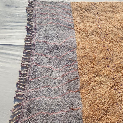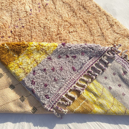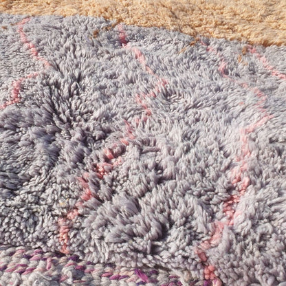 Indulge in the epitome of luxury with the Luxury Dusty Rose Moroccan Rug 6x9, a masterpiece handcrafted by the skilled artisans of the Beni Mrirt region in Morocco’s Middle Atlas Mountains. This handmade Beni Mrirt rug features a lavish blend of dusty rose, yellow, and purple hues, woven from the finest natural dyed wool with an exceptionally thick, shag pile that feels heavenly underfoot. Measuring 6x9 ft (208x287 cm), this 6x9 bedroom rug is a perfect large bedroom rug or 6x9 dining room rug, offering unparalleled softness as a luxury shaggy rug for your master bedroom rug or living room carpet rug.