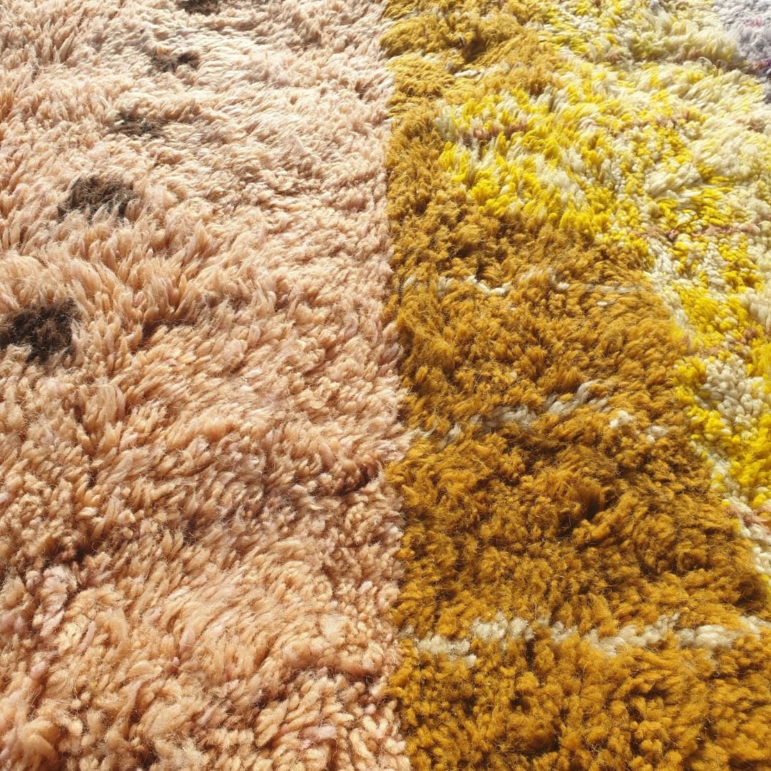 Lamane | Luxurious Golden Yellow 6x9 Moroccan Rug Plush Beni Mrirt Ultra Soft | Authentic Berber wool Beni Rug | 6'63x9'71 Ft | 202x296 cm