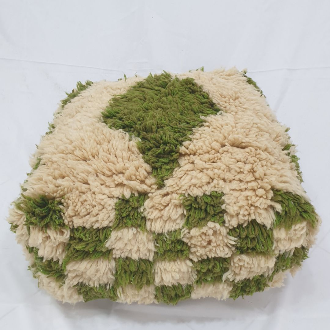 Calming Handmade Moroccan Pouf – Green Checkered Floor Cushion 24x24x8 inch | 60x60x20 cm