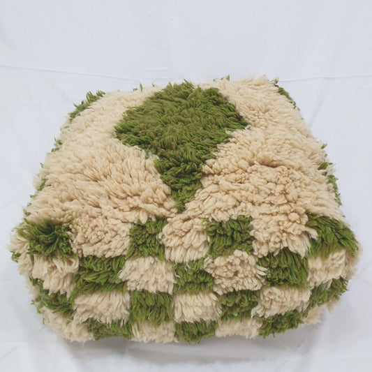 Calming Handmade Moroccan Pouf – Green Checkered Floor Cushion 24x24x8 inch | 60x60x20 cm