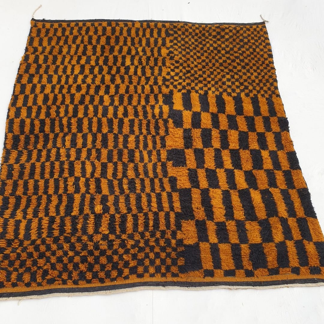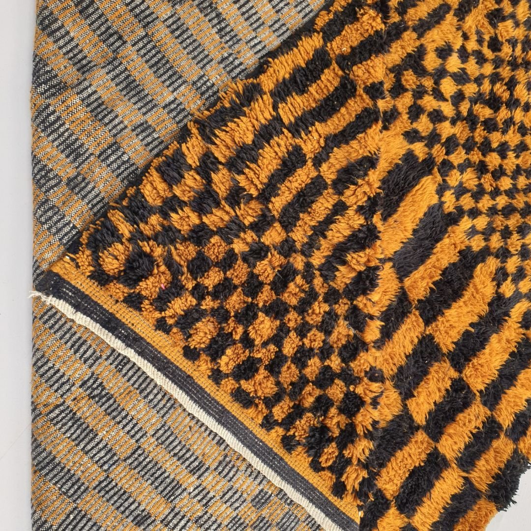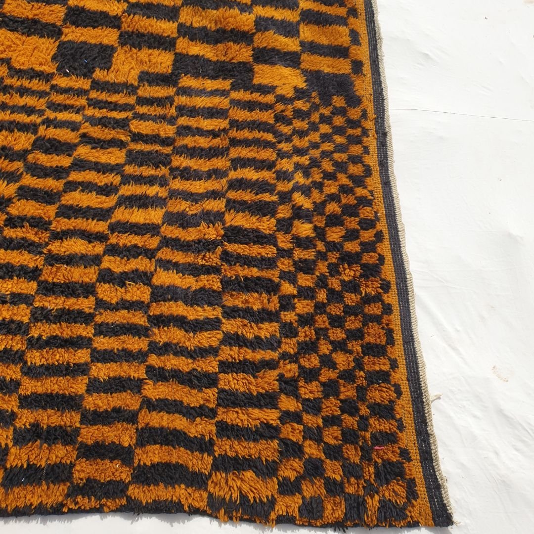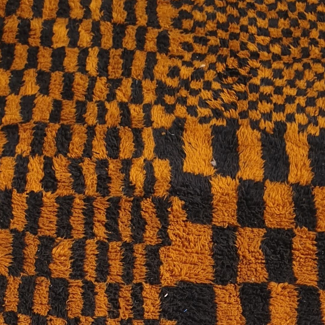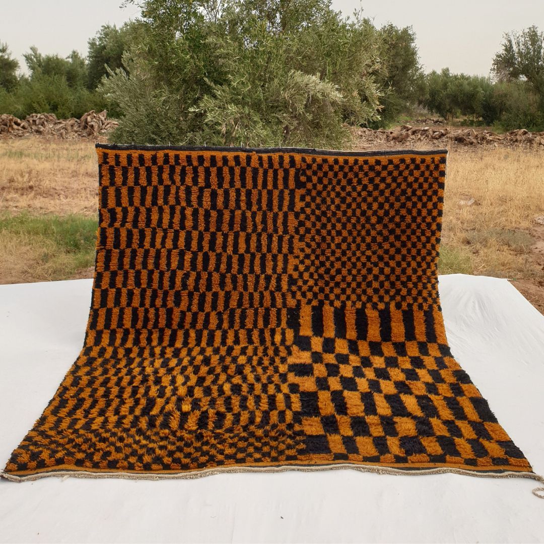 Mazama | Checkered Golden Brown & Black 8x10 Moroccan Rug Beni Mrirt Ultra Soft & Thick | 8'53x10'27 Ft | 260x313 cm
