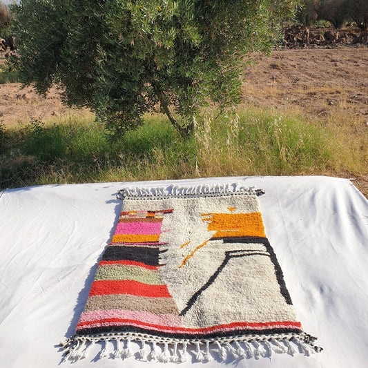 Laghala - BENI OUARAIN Marokon valkoinen matto makuuhuoneeseen | Marokon High Pile Area -matto berberi aito villa | 5'4x3'6 Ft | 165x110 cm