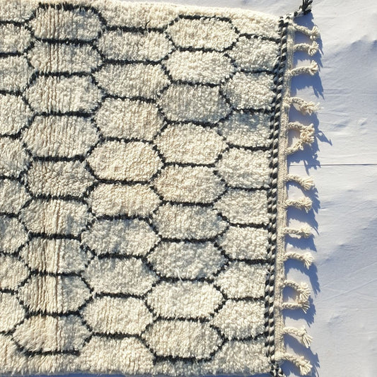 Tilia - Klassinen mustavalkoinen marokkolainen matto Azilal | Aito berberisuunnittelu | 4'89x8'33 jalkaa | 149x254 cm