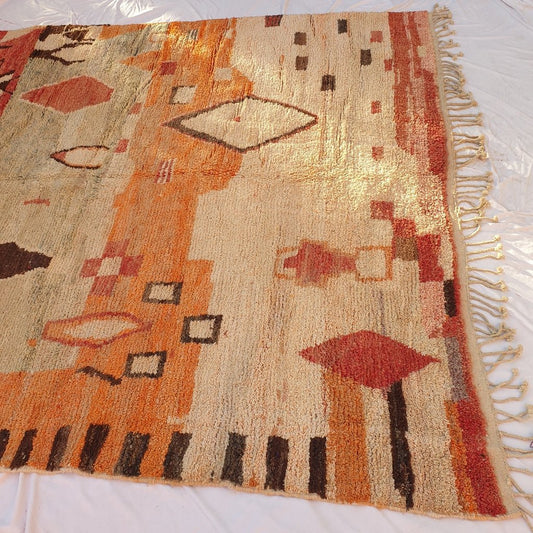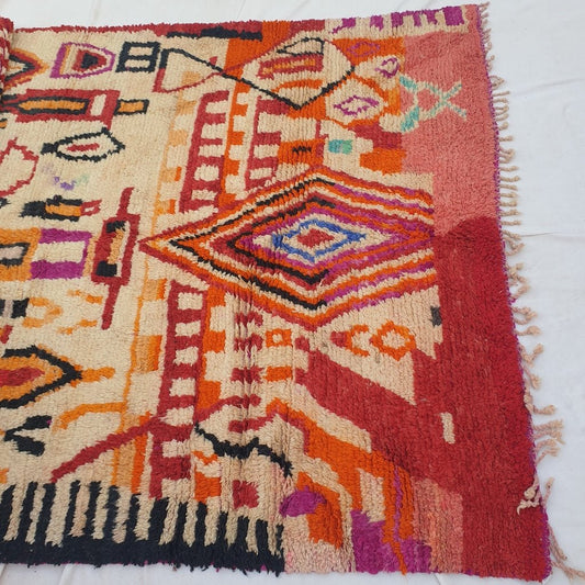 KHZAMA | 9'5x6 Ft | 3x2 m | Marokon värikäs matto | 100% villaa käsintehty