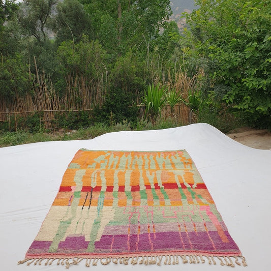 Zadaina - Marokon matto Boujad | Värikäs aito berberikäsintehty makuuhuoneen matto | 8x5 Ft | 2,45x1,52 m