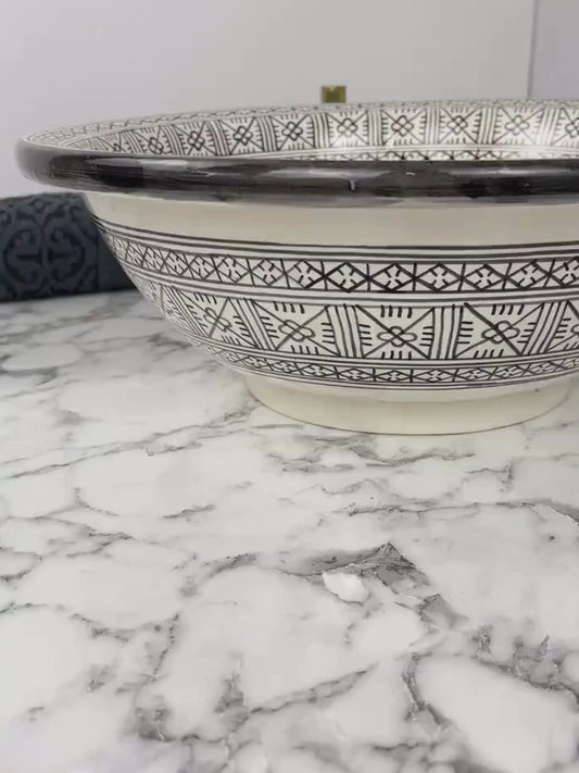 Figuig - Marokon mustavalkoinen keraaminen kylpyhuoneen pesuallas - tyylikäs, muokattavissa oleva, käsintehty ja lyijytön - (ETMMT)