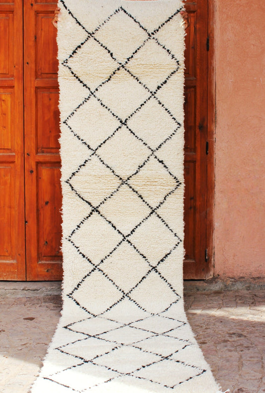 MAYE | Tapis BENI OUARAIN « Runner » Noir & Blanc | 100% laine fait main au Maroc