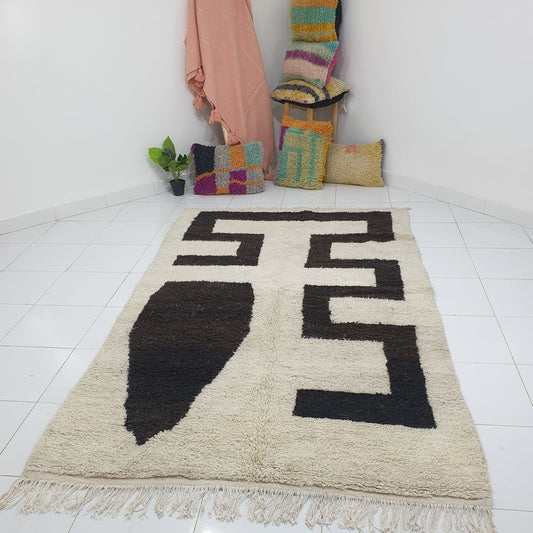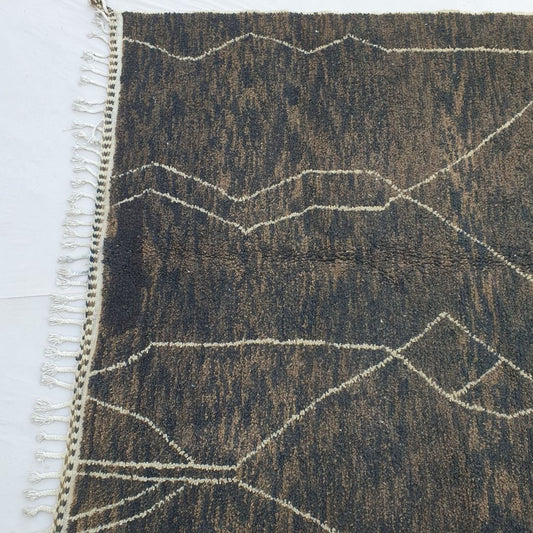 Takya | Tapis Marocain Noir Marron 6x9 Authentique Beni Ourain | Tapis en laine berbère fait à la main | 6'66x9'84 Pi | 203x300cm
