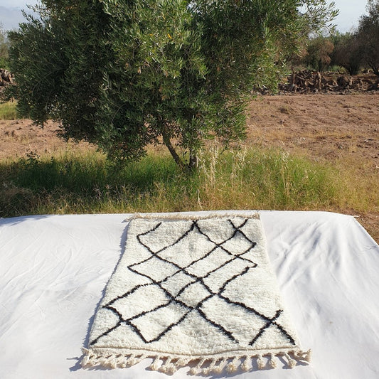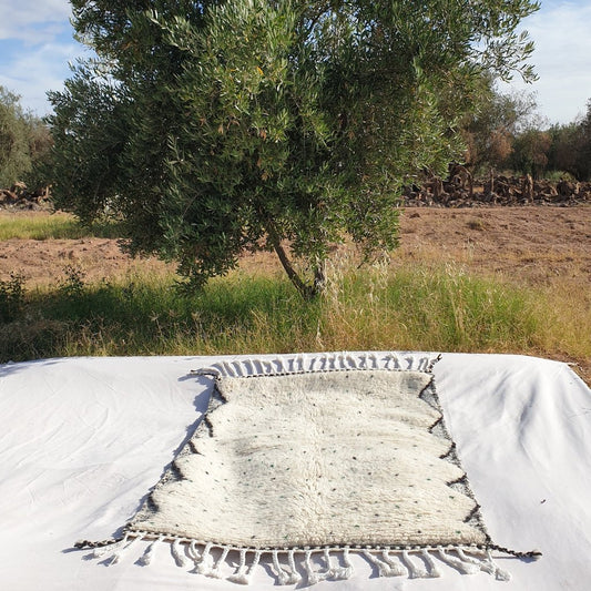 Benti - BENI OUARAIN Tapis Marocain Blanc pour Chambre | Tapis marocain à poils longs en laine berbère authentique | 5'2x3'6 pieds | 157x109cm