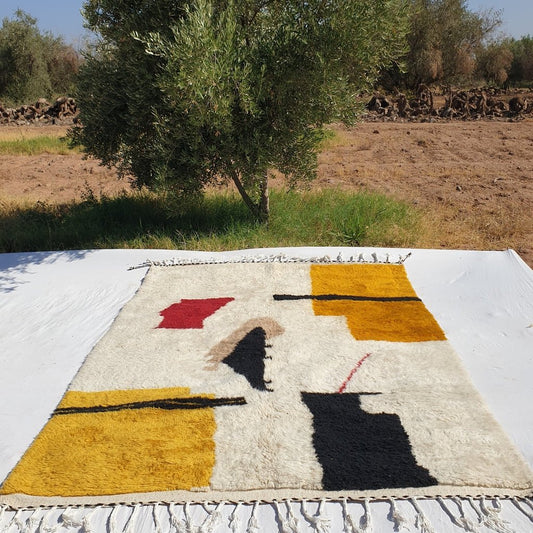 Tapis Marocain Wahida Beni Ourain Blanc et Jaune Moutarde | 9'80x6'80 Pi | 300x207 cm | 100% laine fait main