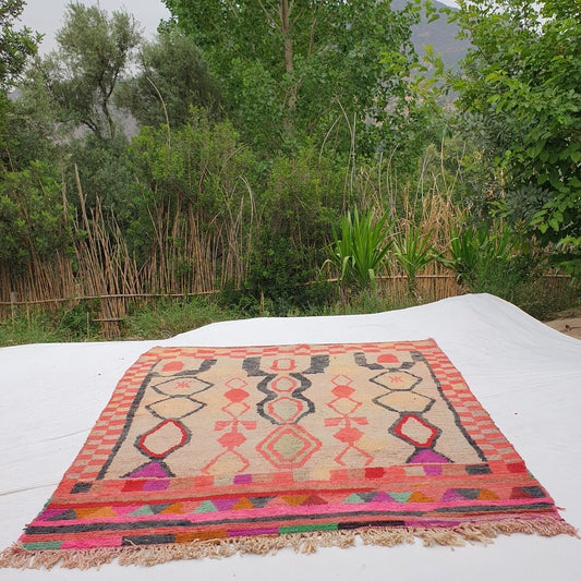 TAPIS MAROCAIN BOUJAAD | Tapis berbère marocain | Tapis coloré Tapis marocain | Tapis de chambre berbère authentiques faits à la main | 8x5 pieds | 2,42x1,54m