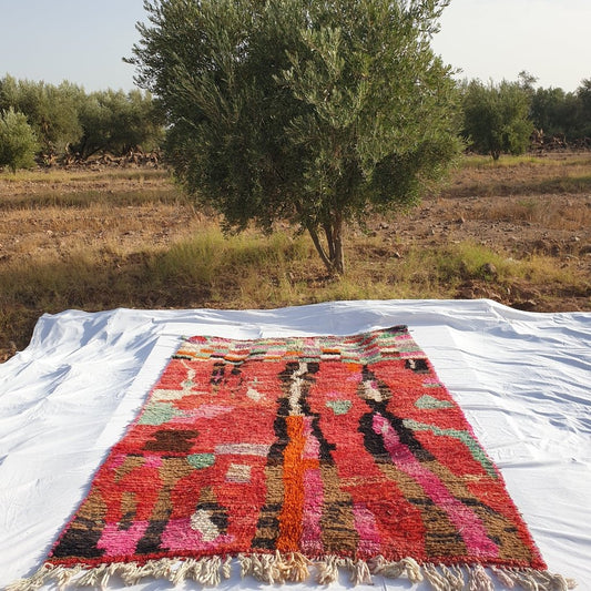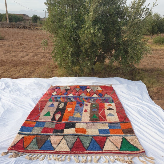 Miala - Tapis coloré marocain BENI OUARAIN pour chambre à coucher | Tapis marocain à poils longs en laine berbère authentique | 5x3'6 pi | 152x110cm