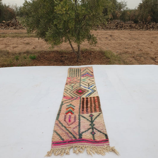 Tapis coureur marocain | Authentique coureur Boujaad | Tapis de laine coloré | Coureur berbère | Coureur de couloir | 9'6 x 2'2 pieds | 2,92x68 cm