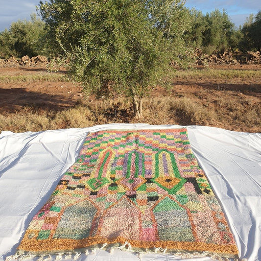 TAPIS MAROCAIN BOUJAAD | Tapis berbère marocain | Tapis coloré Tapis marocain | Tapis de chambre berbère authentiques faits à la main | 9x5'5 pieds | 2,76x1,67m
