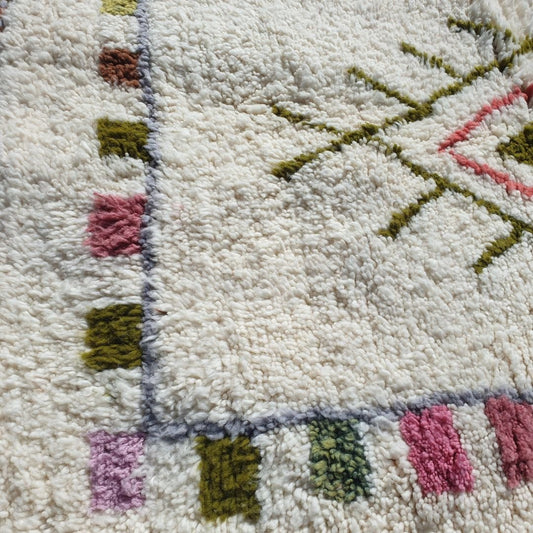 Tapis Azilal blanc marocain | BIDWA | 10x6 pieds | 3x1,82 m |100% laine fait main